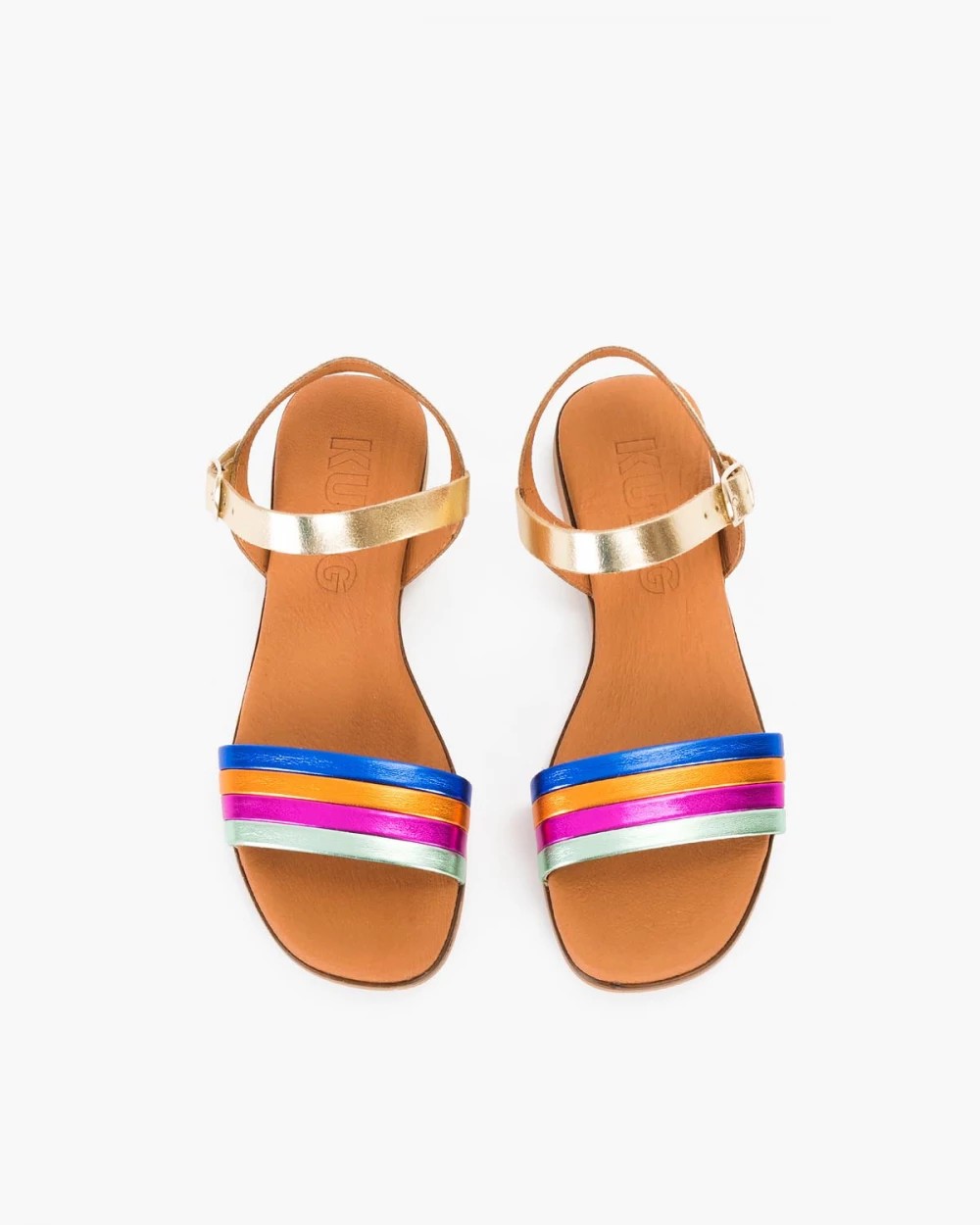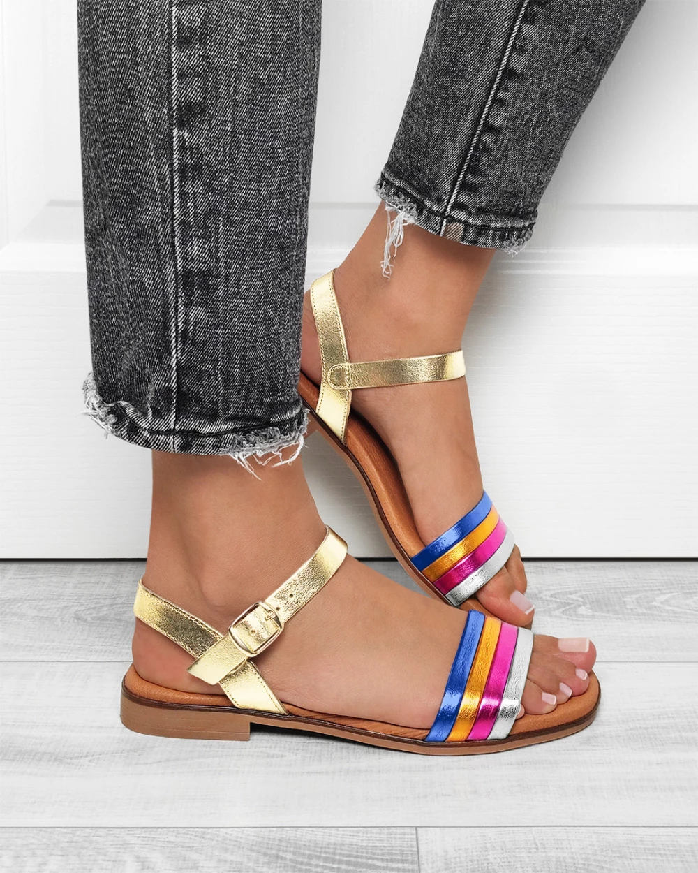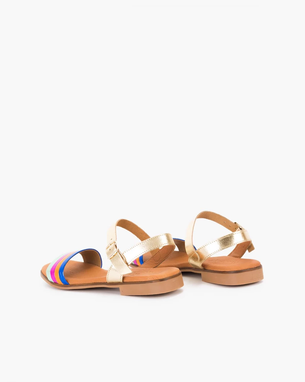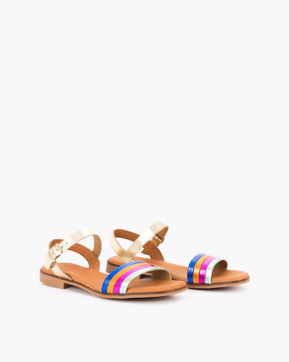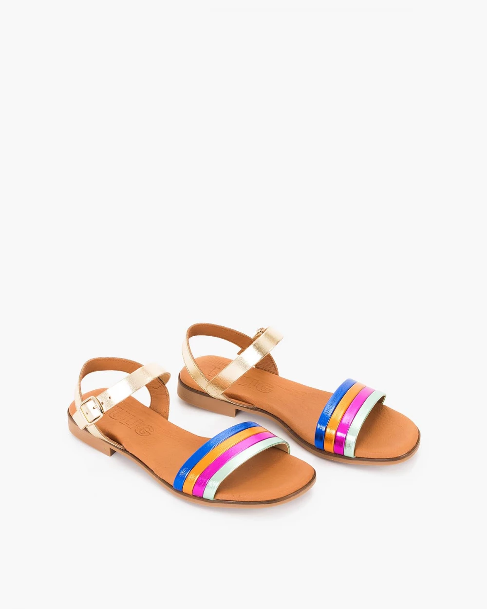 Wielokolorowe sandały damskie skórzane na niskim obcasie