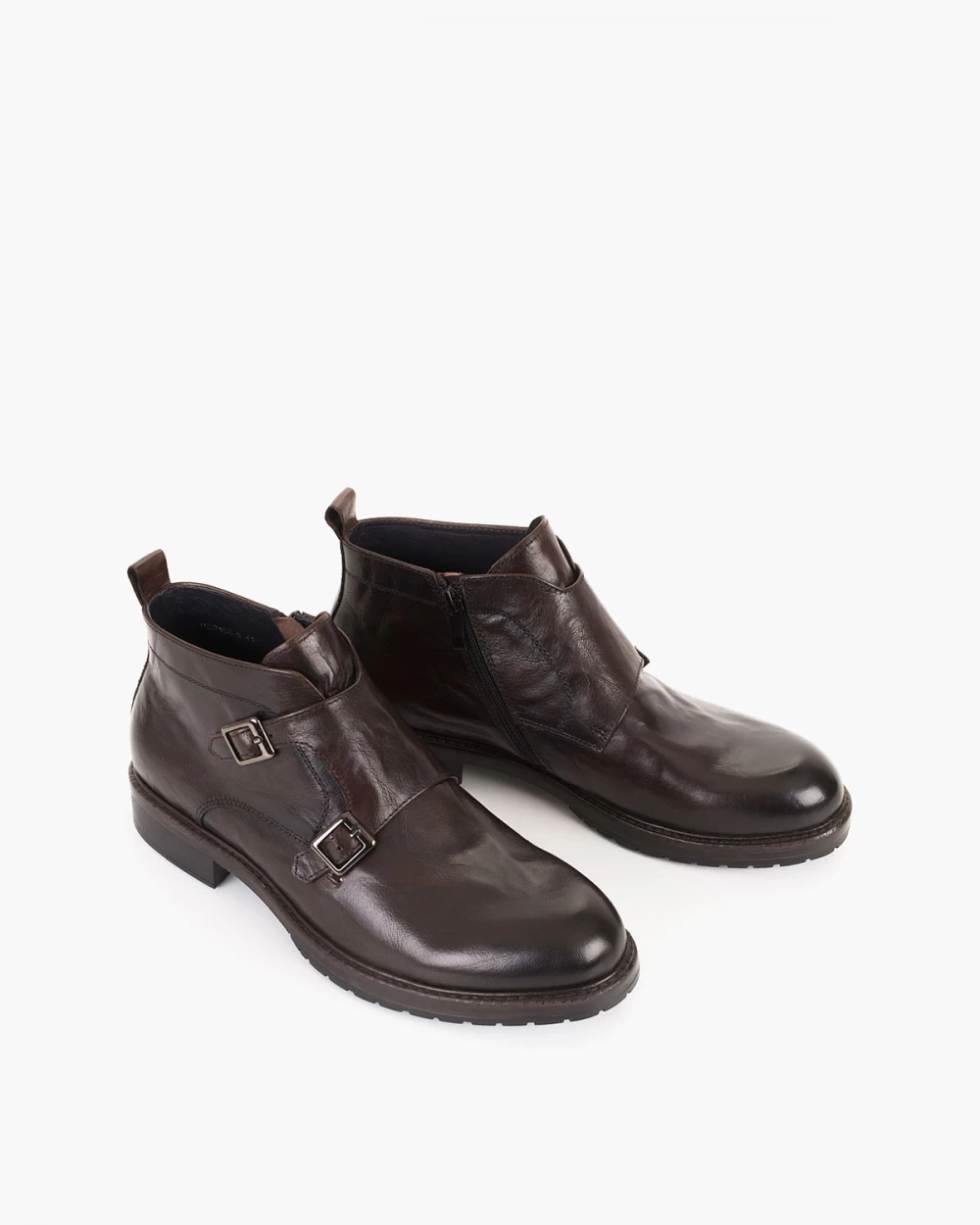 Ciemnobrązowe sztyblety męskie skórzane monki