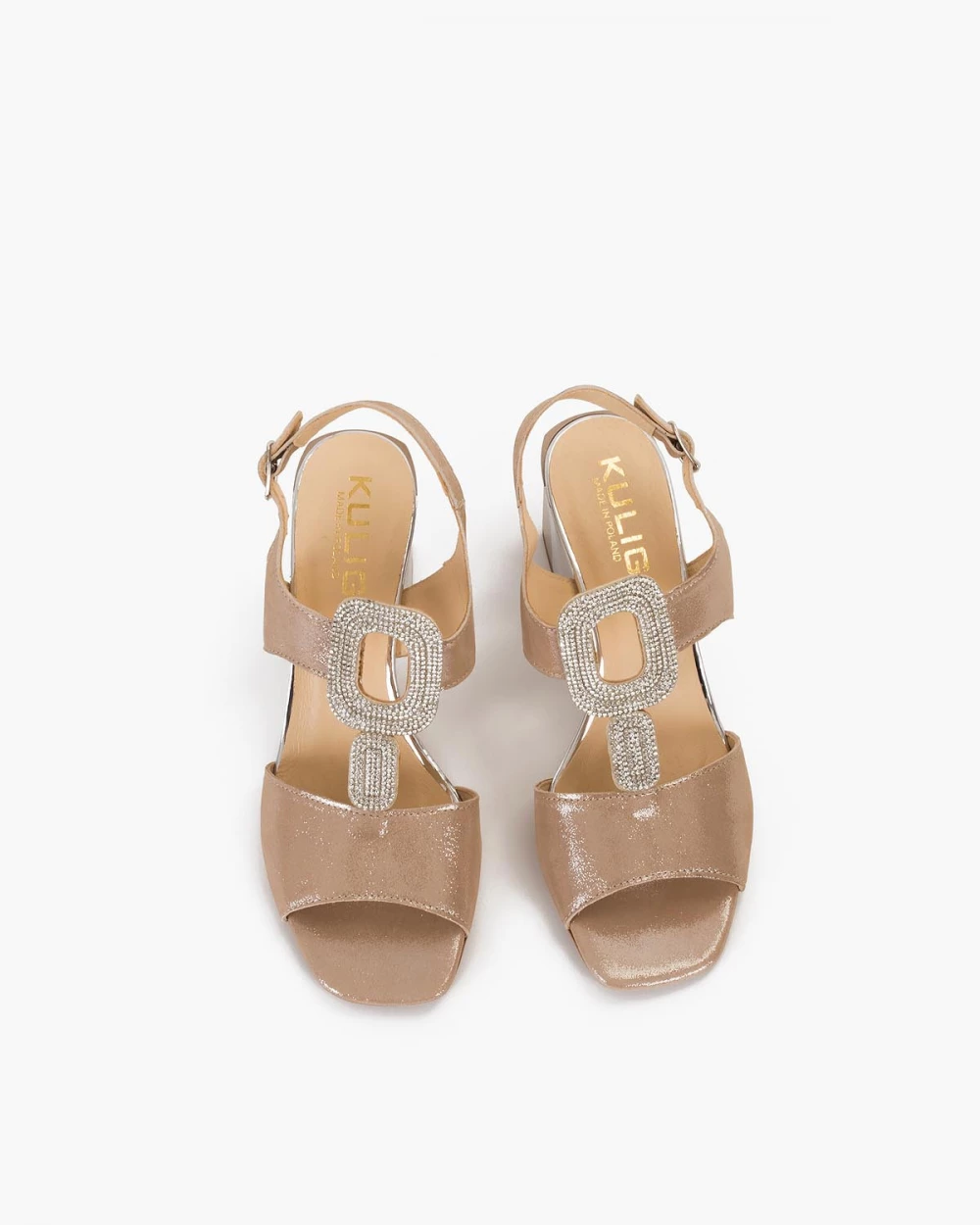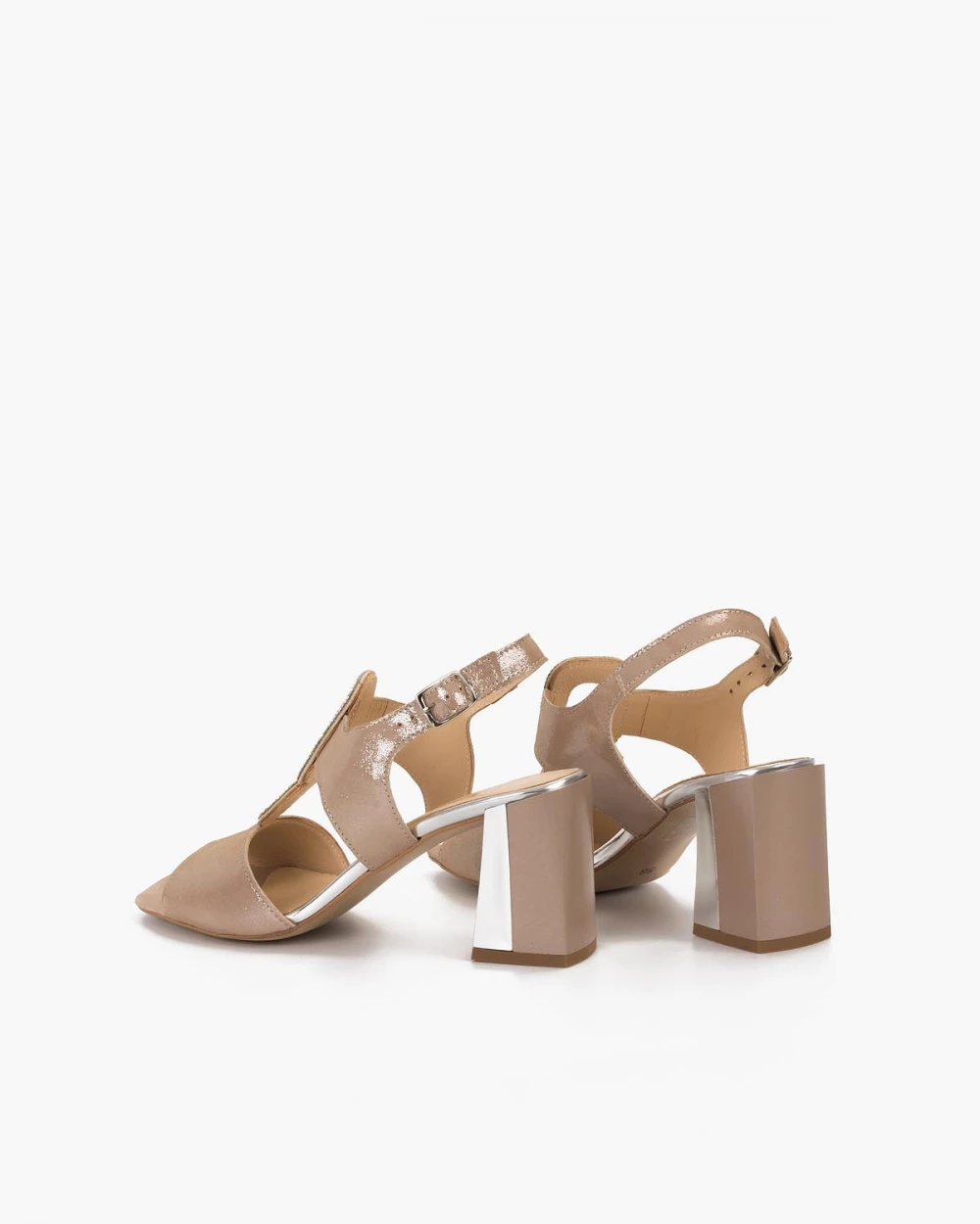 Beżowe sandały damskie ze skóry nubukowej na słupku
