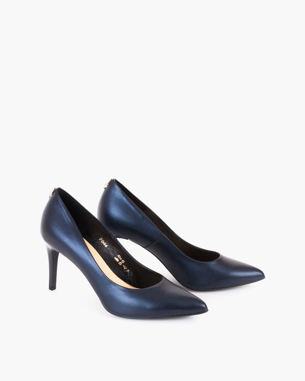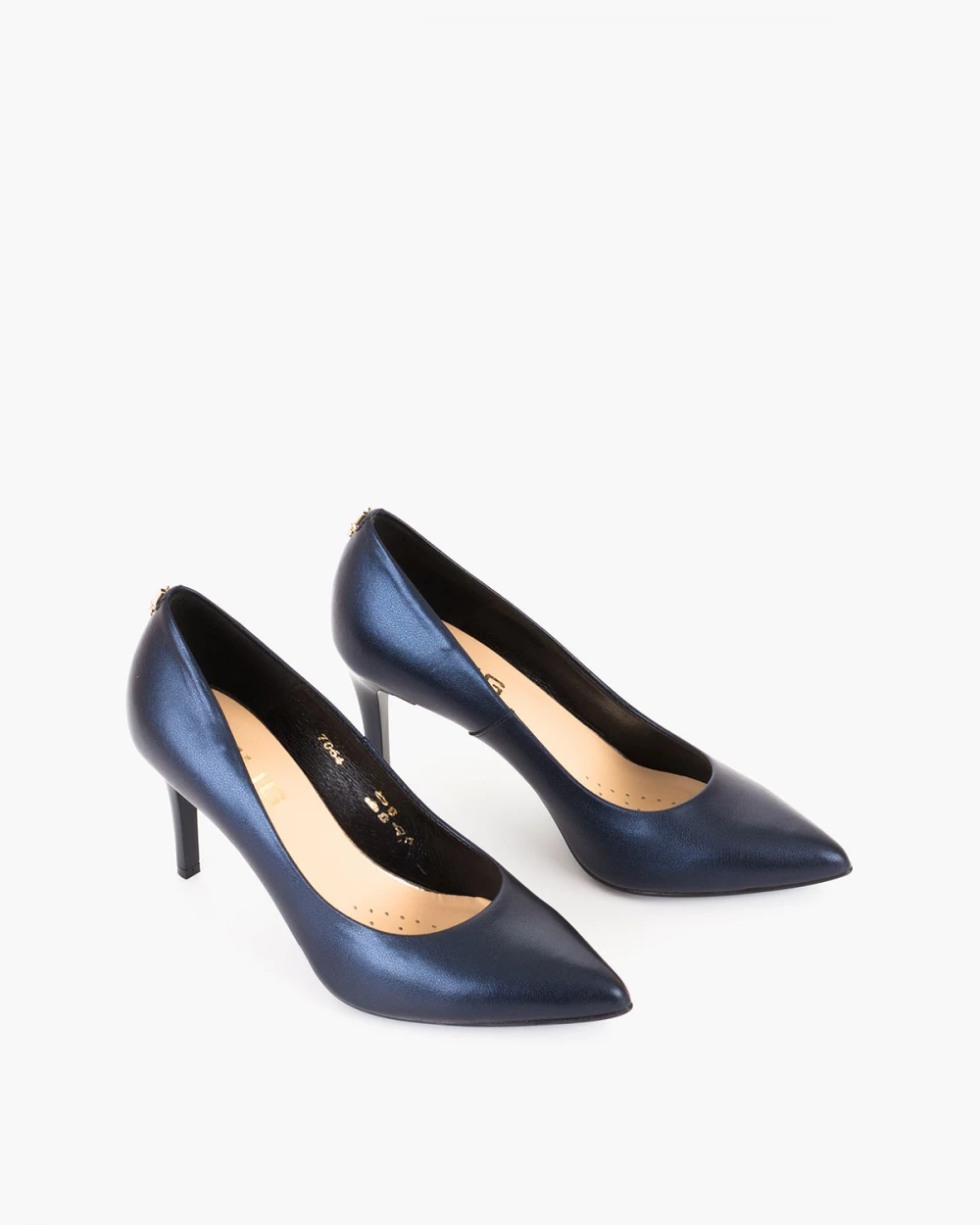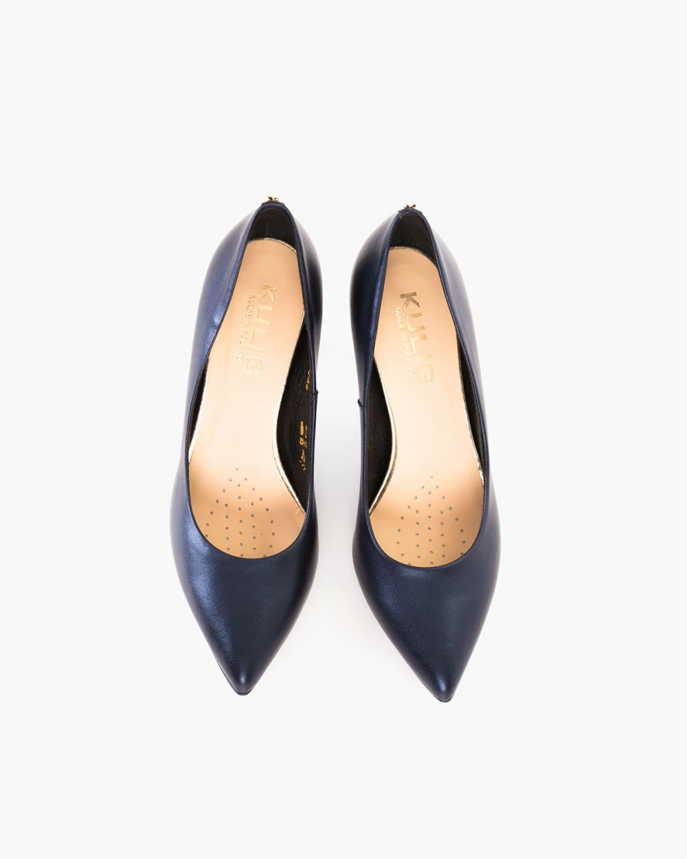 Granatowe czółenka damskie ze skóry naturalnej