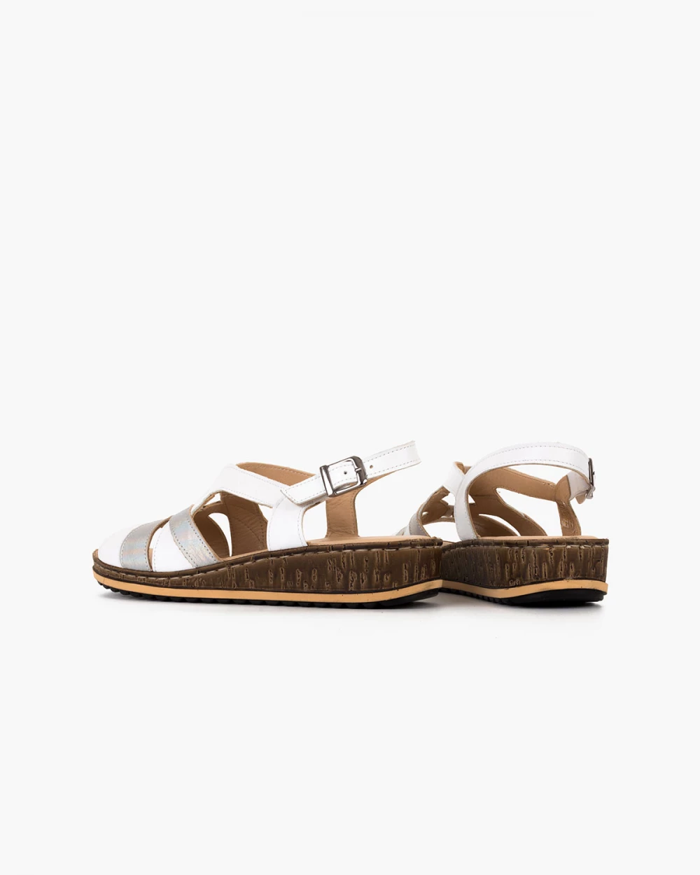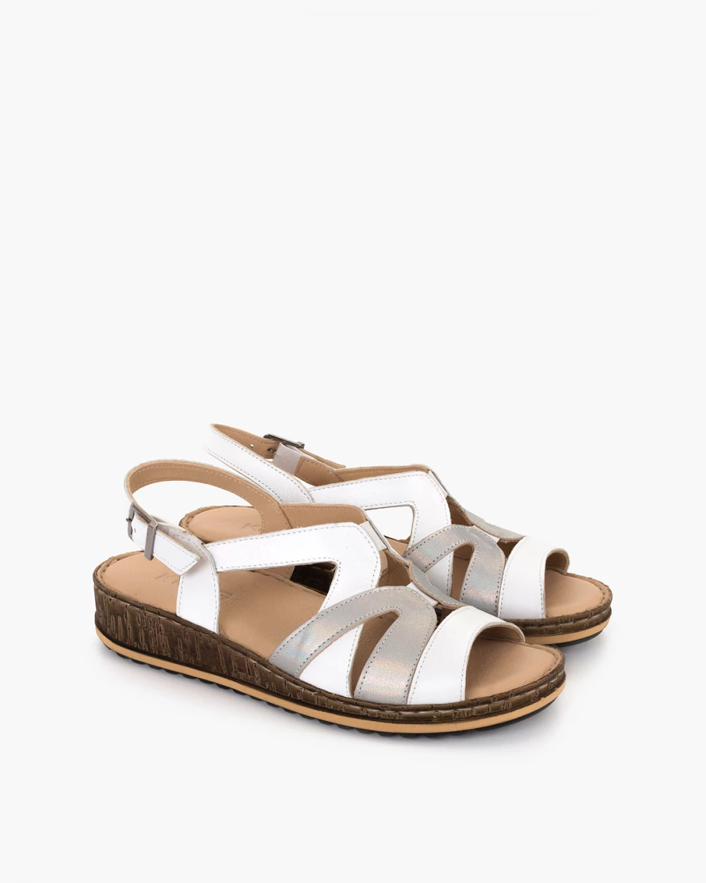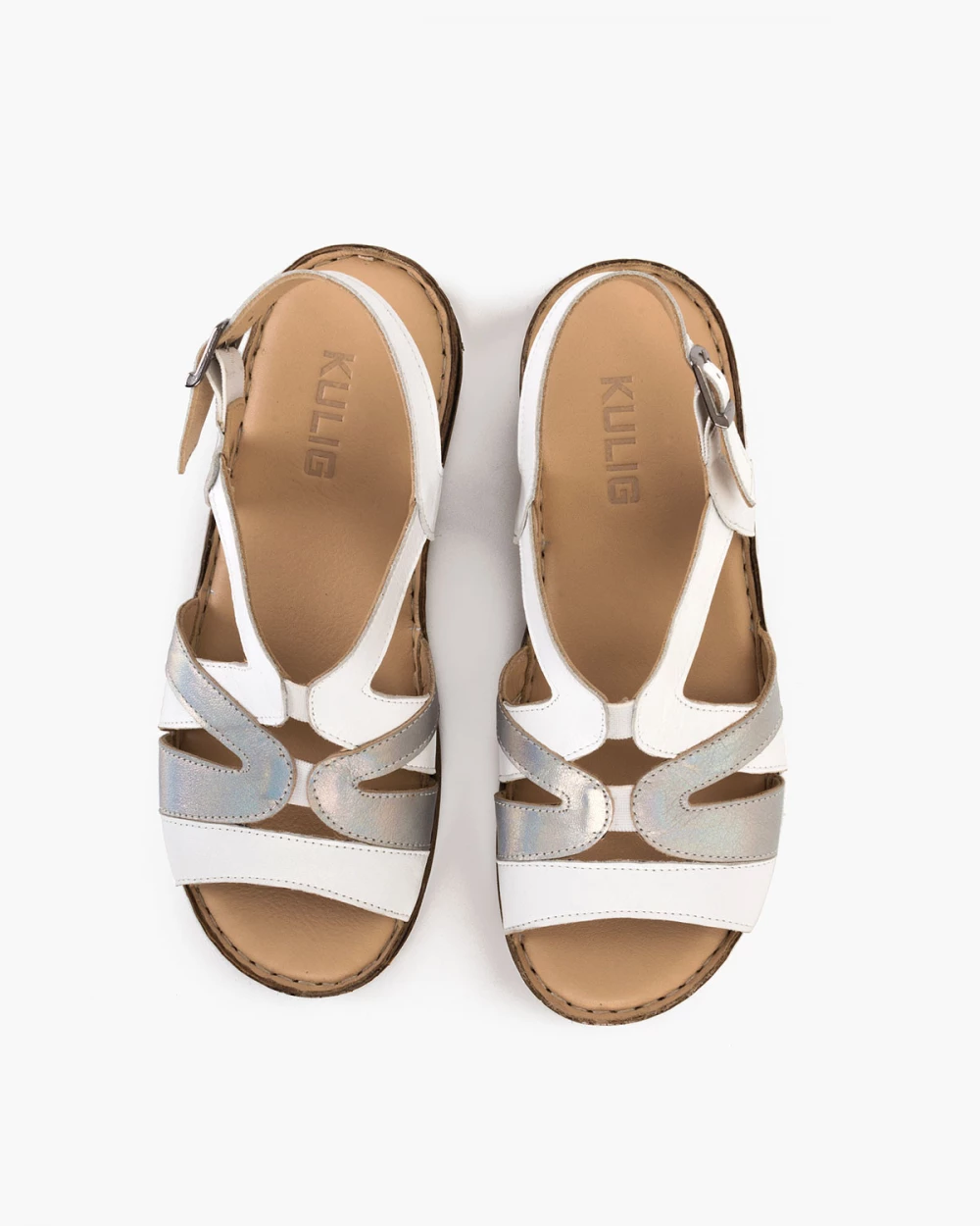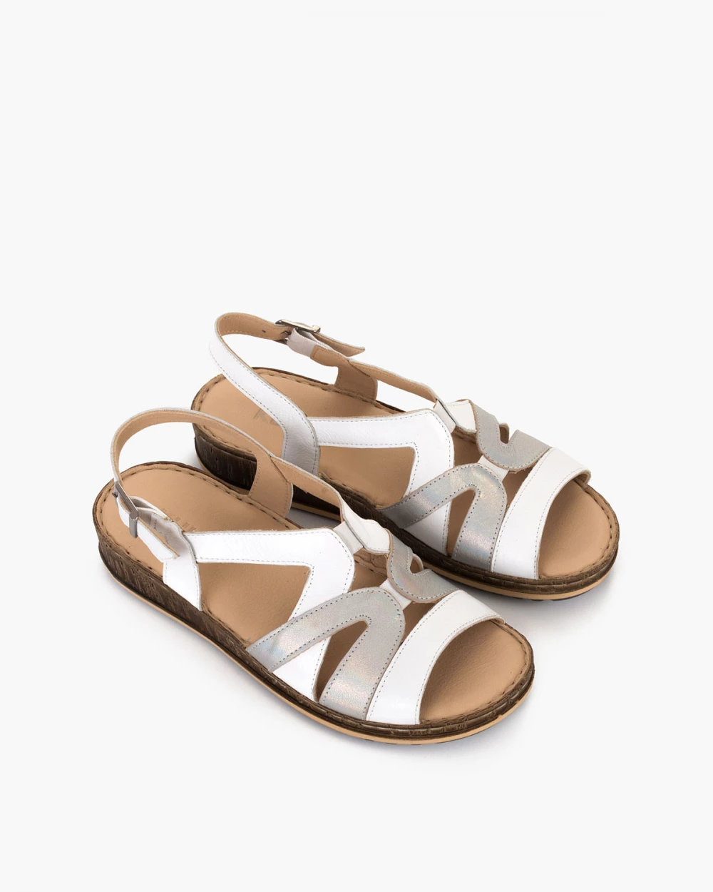 Biało-srebrne sandały damskie ze skóry naturalnej