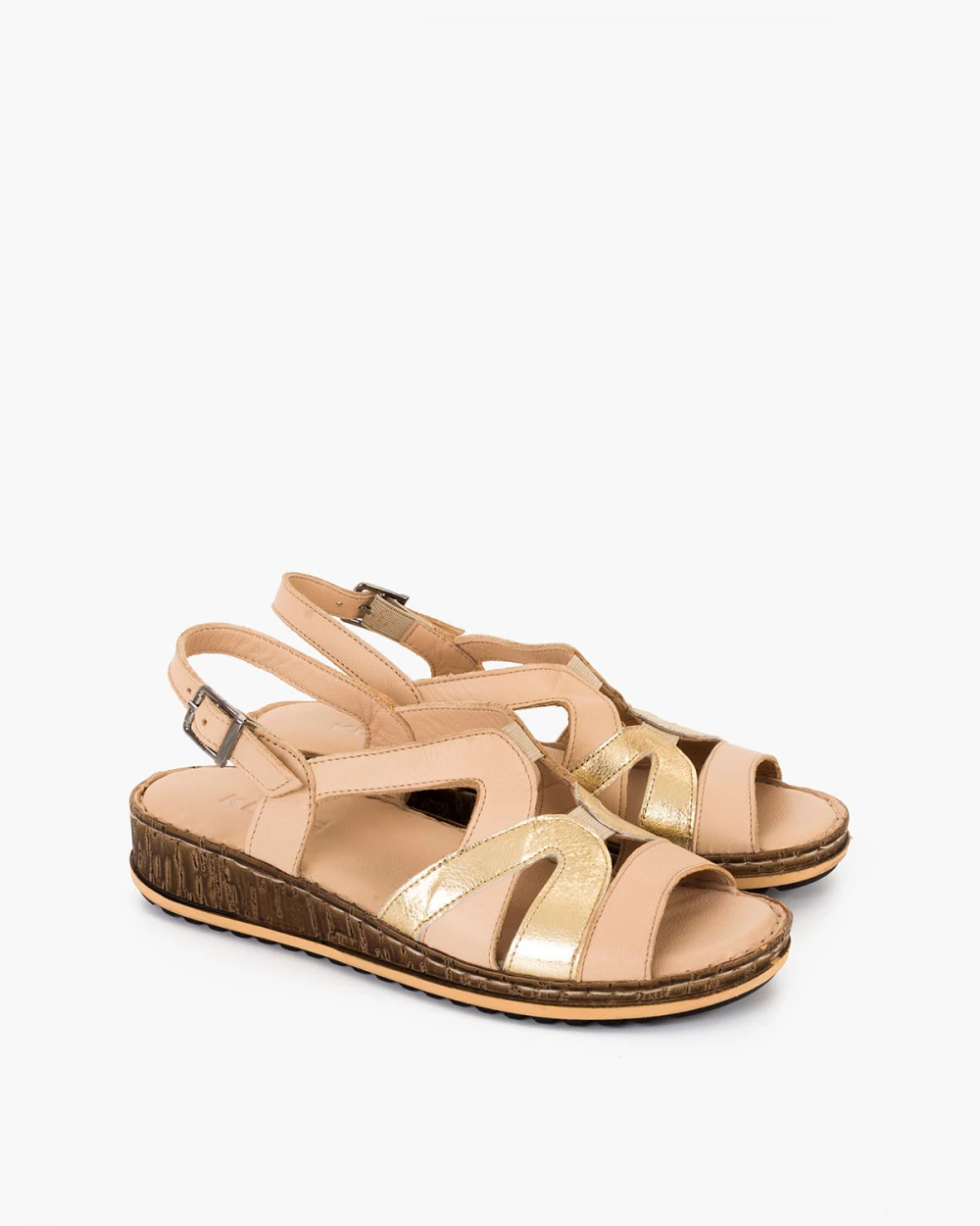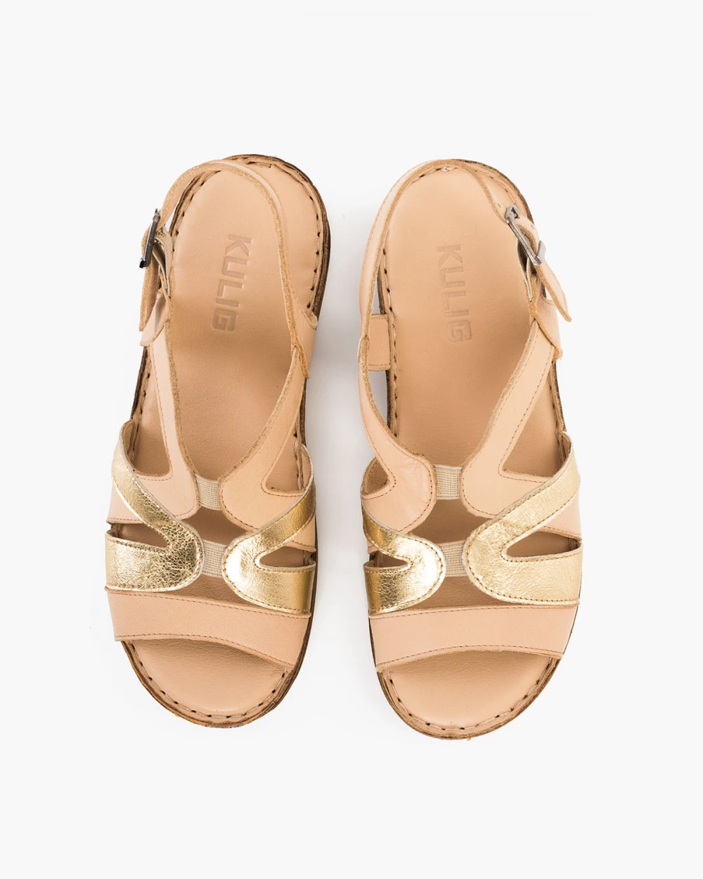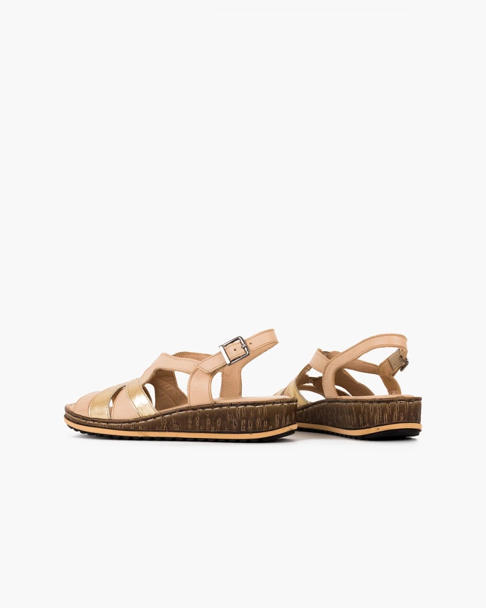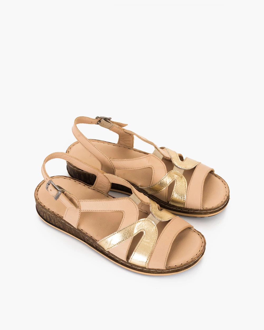 Beżowo-złote sandały damskie ze skóry naturalnej