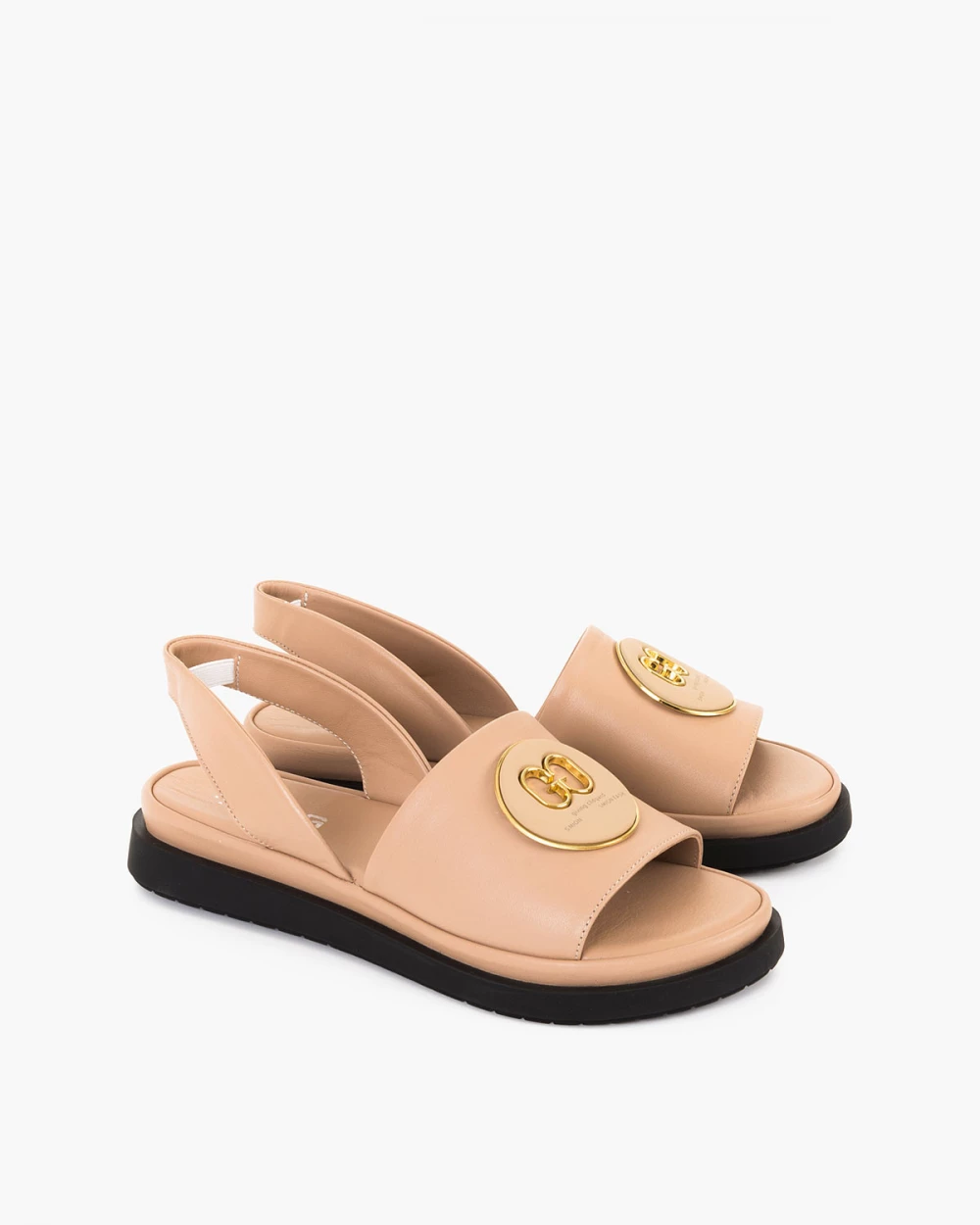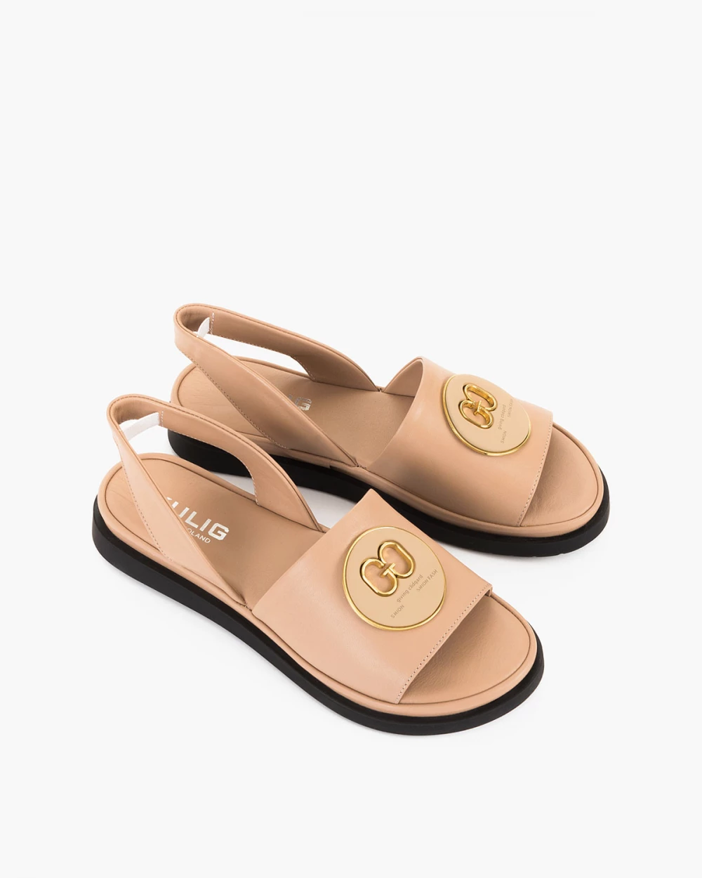 Beżowe sandały skórzane na płaskim obcasie