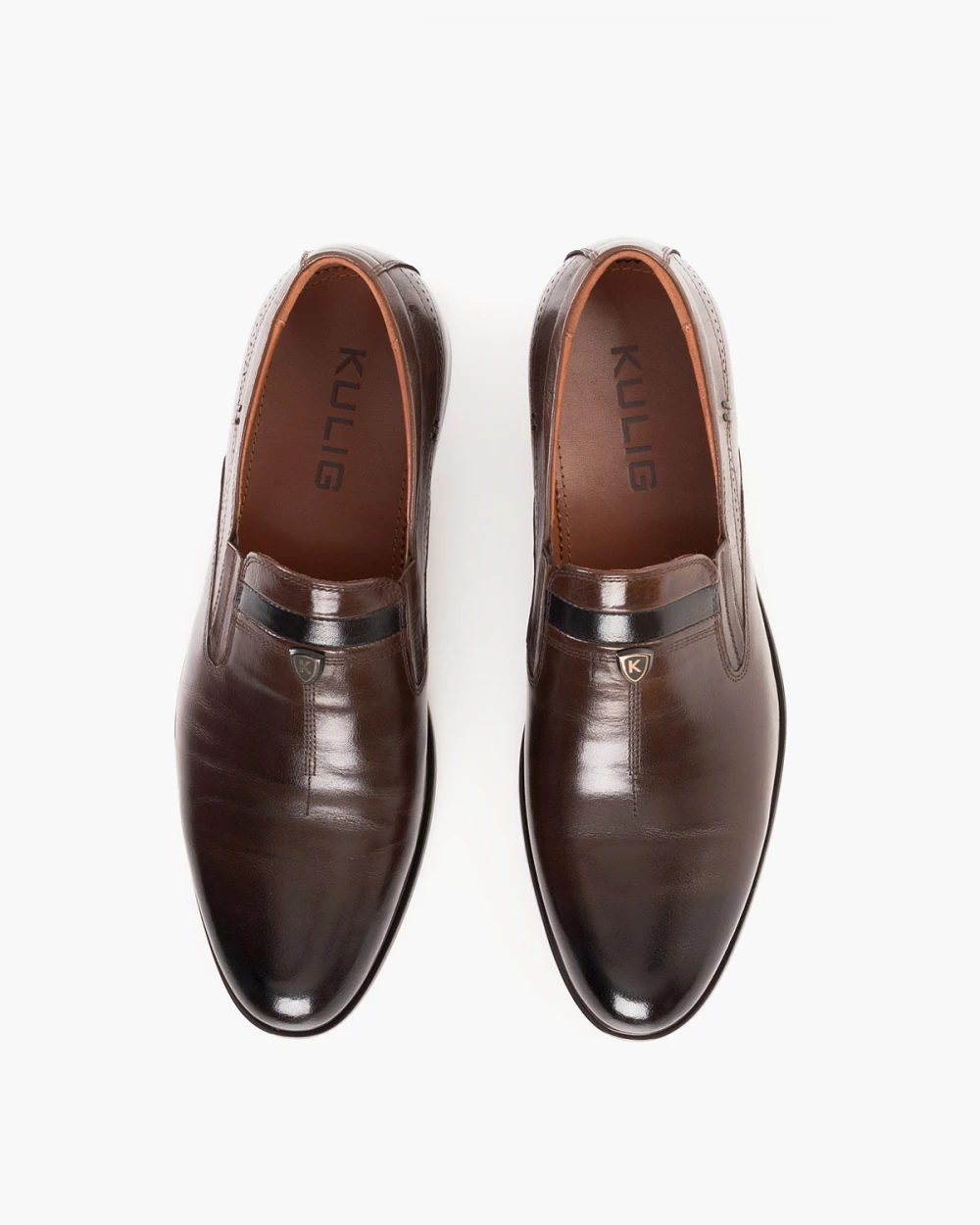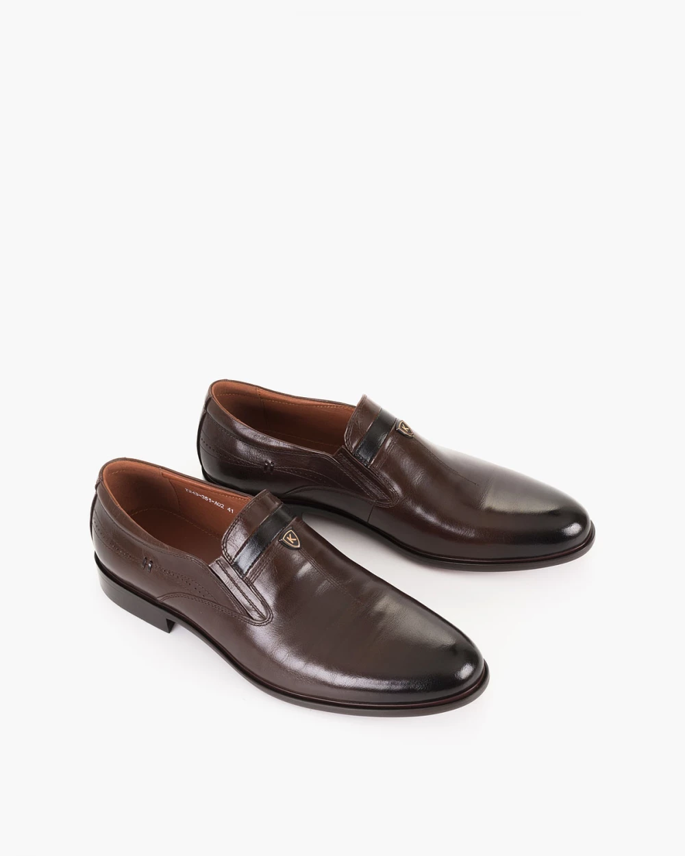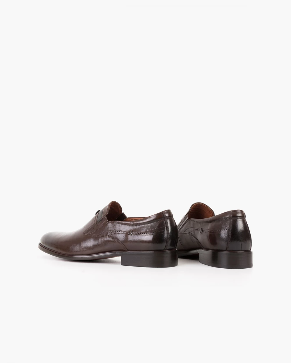 Ciemnobrązowe półbuty wizytowe lakierowane ze skóry naturalnej