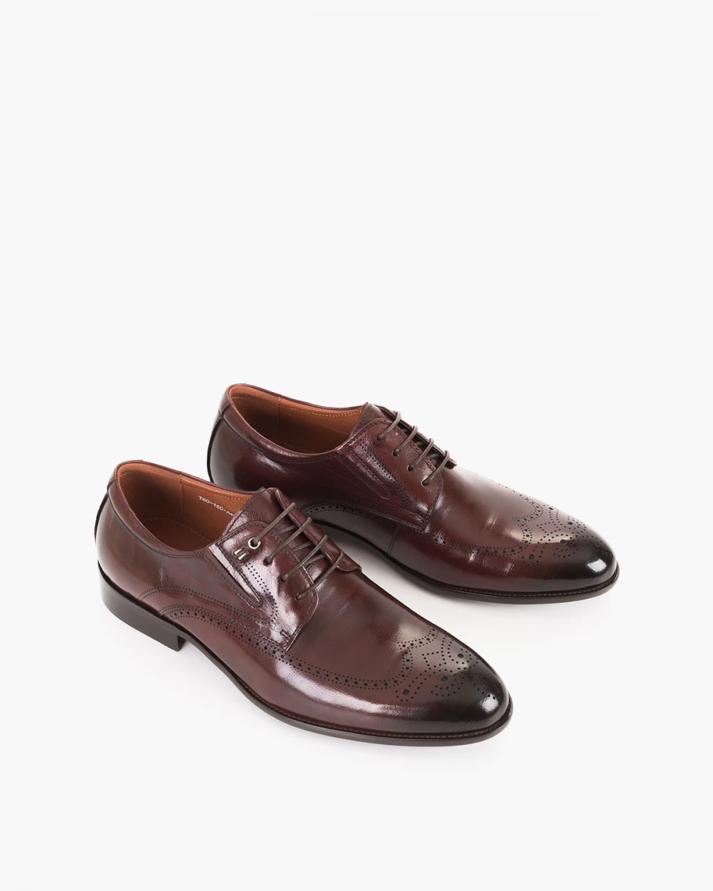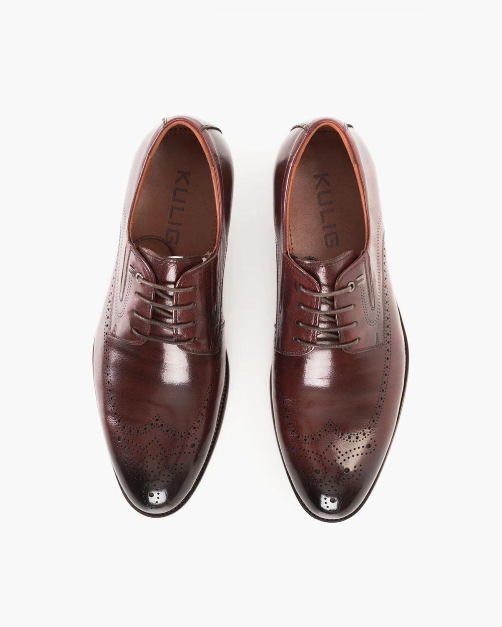 Bordowe półbuty wizytowe z naturalnej skóry lakierowanej