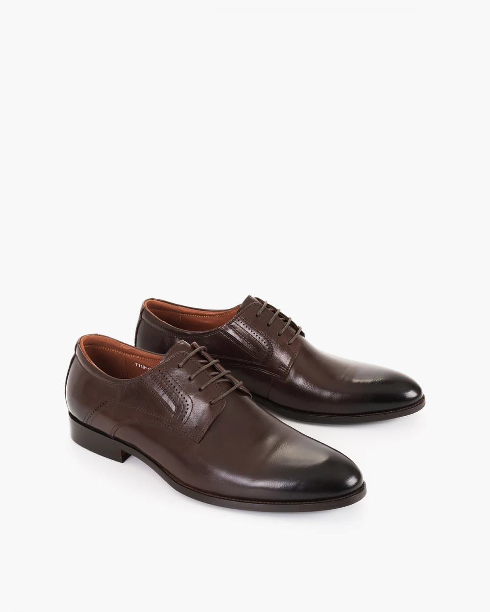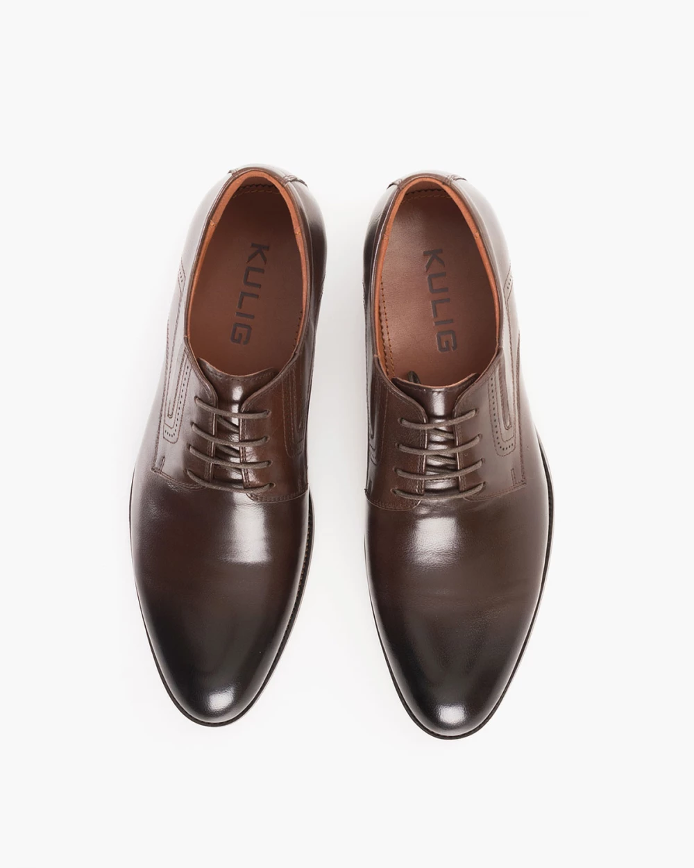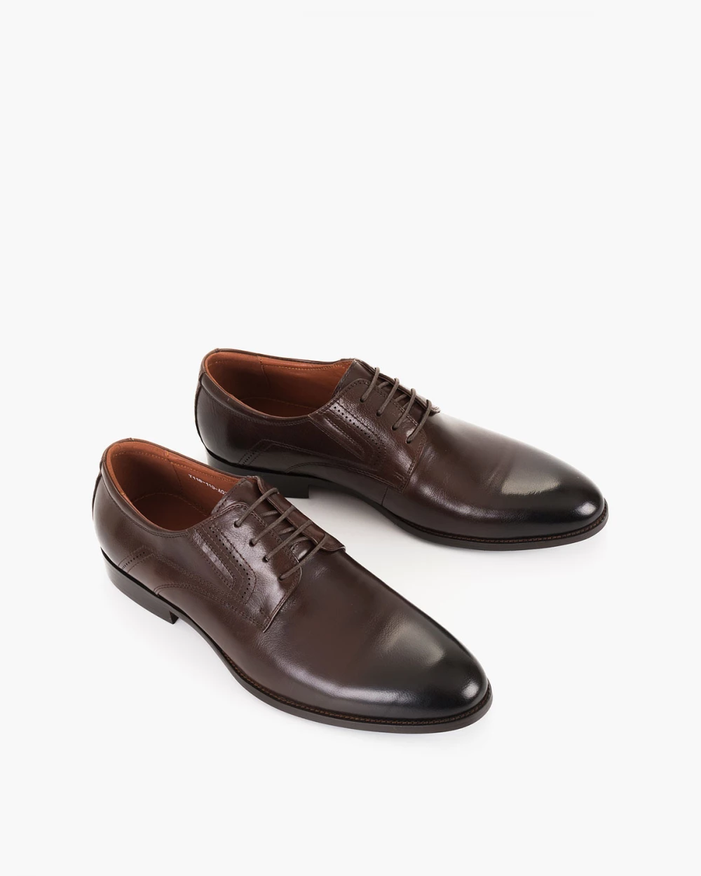 Ciemnobrązowe półbuty wizytowe ze skóry lakierowanej
