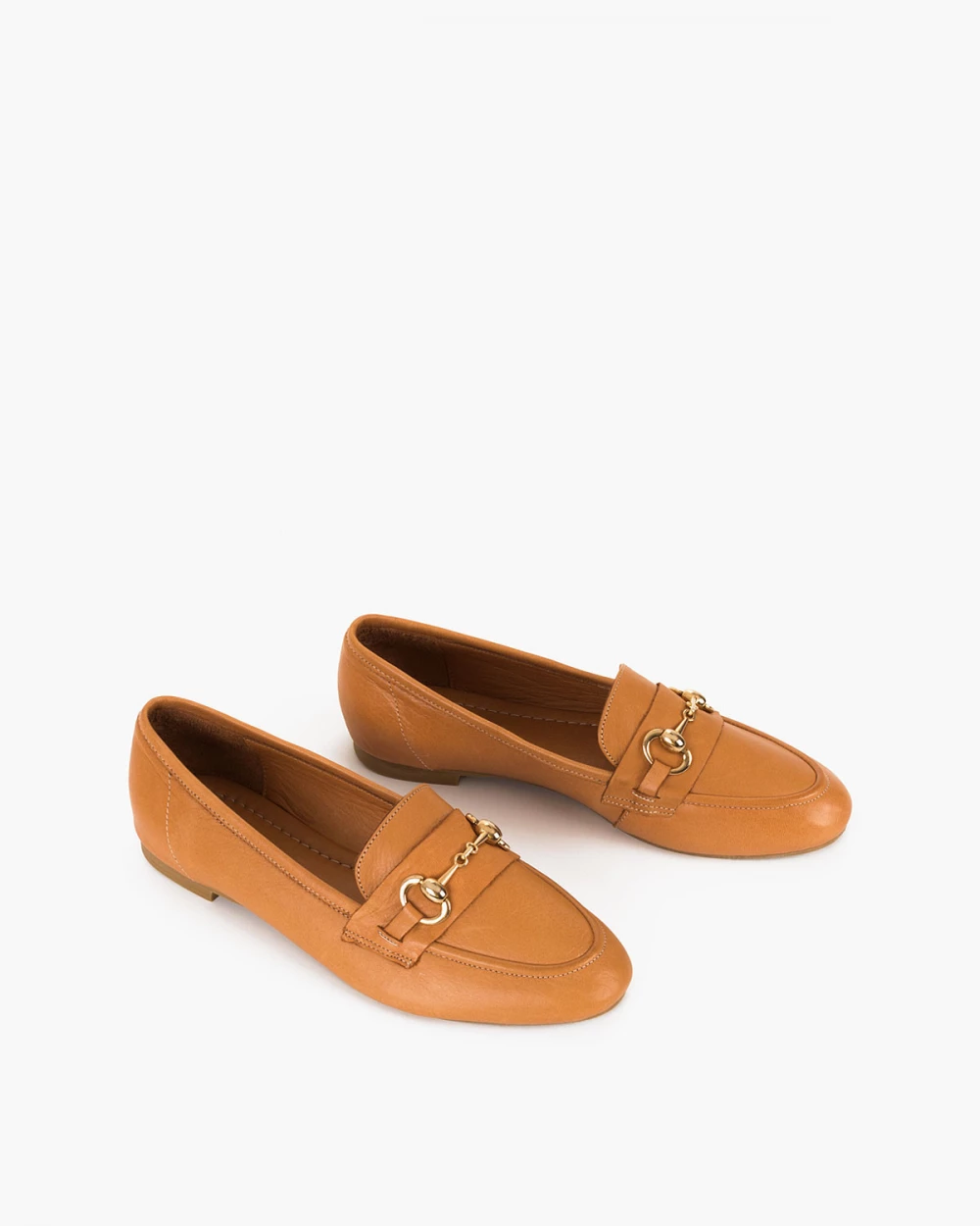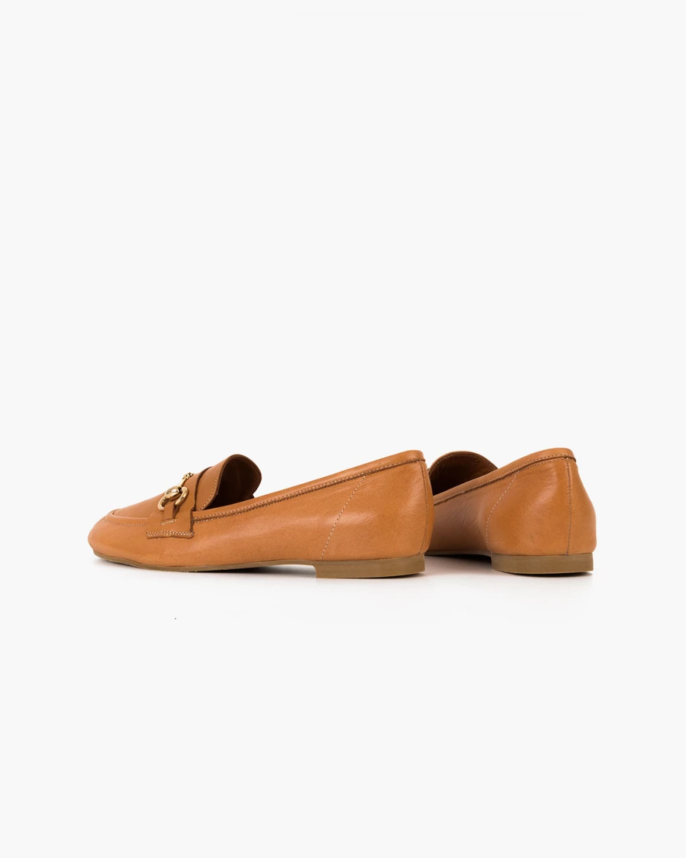 Rude mokasyny damskie skórzane z klamrą na niskim obcasie