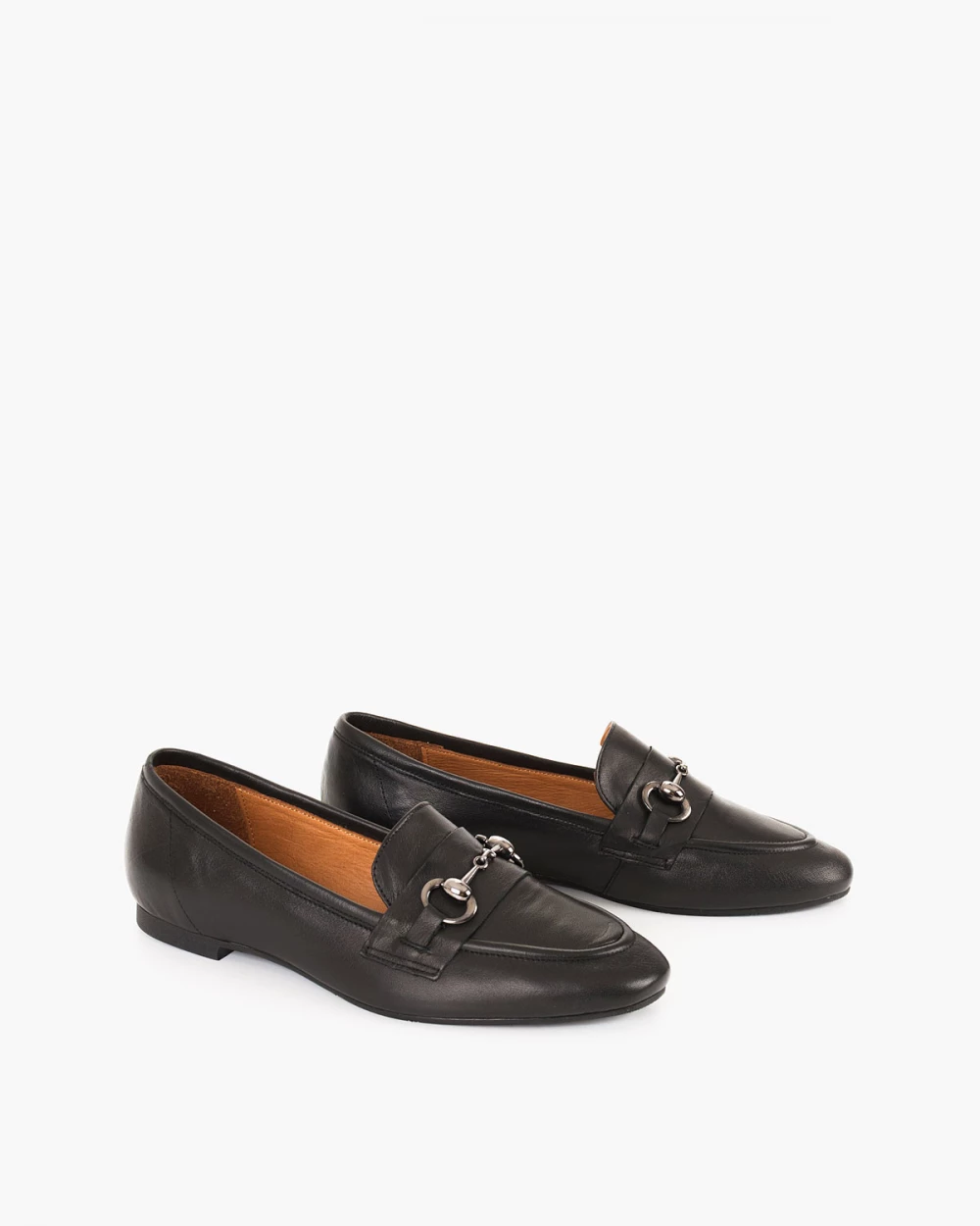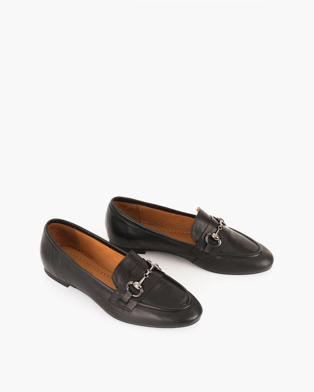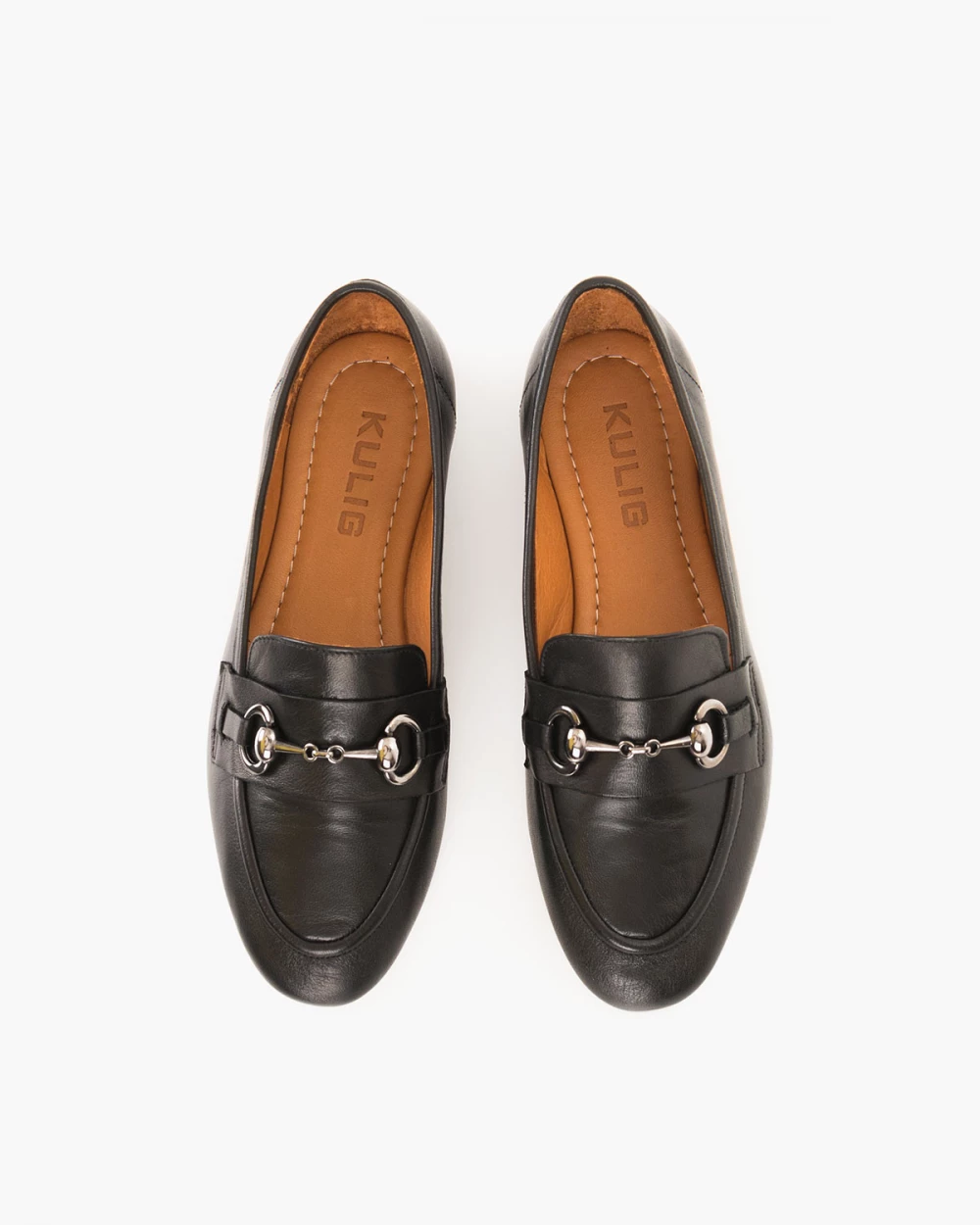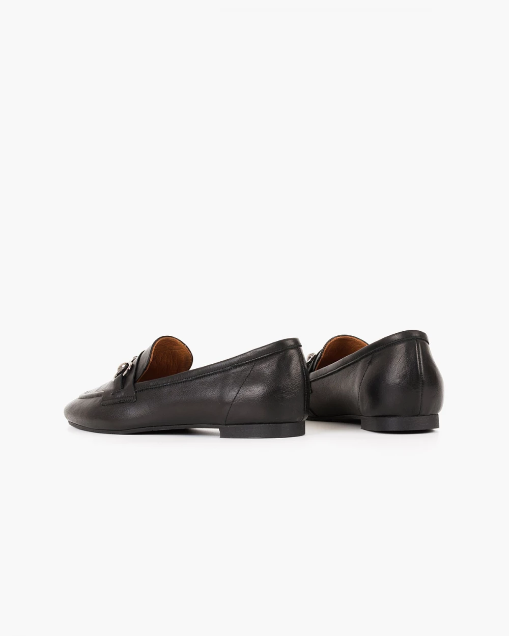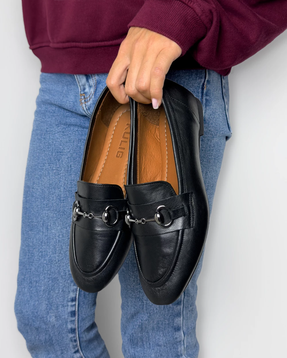 Czarne mokasyny damskie z naturalnej skóry licowej na niskim obcasie