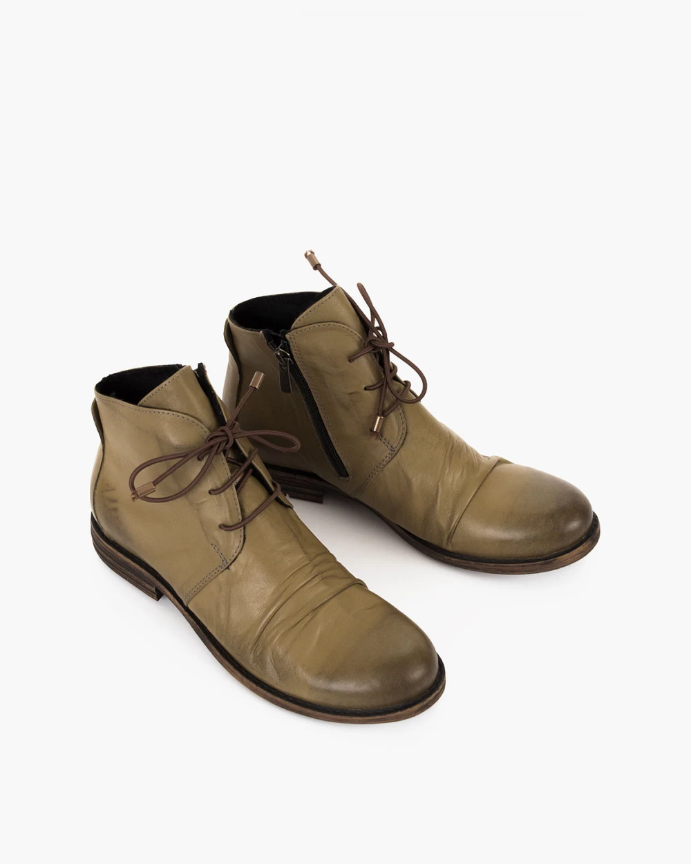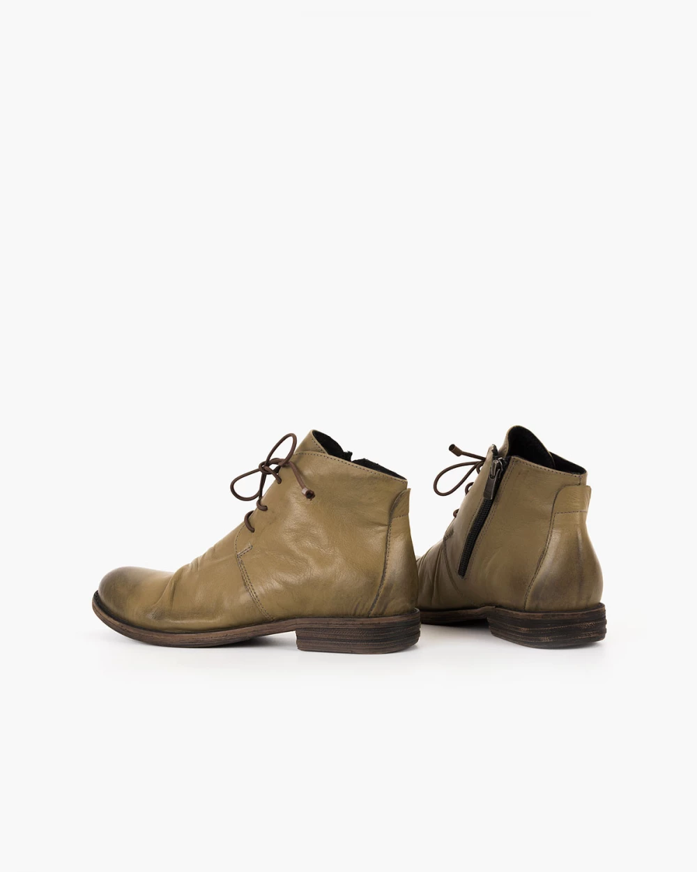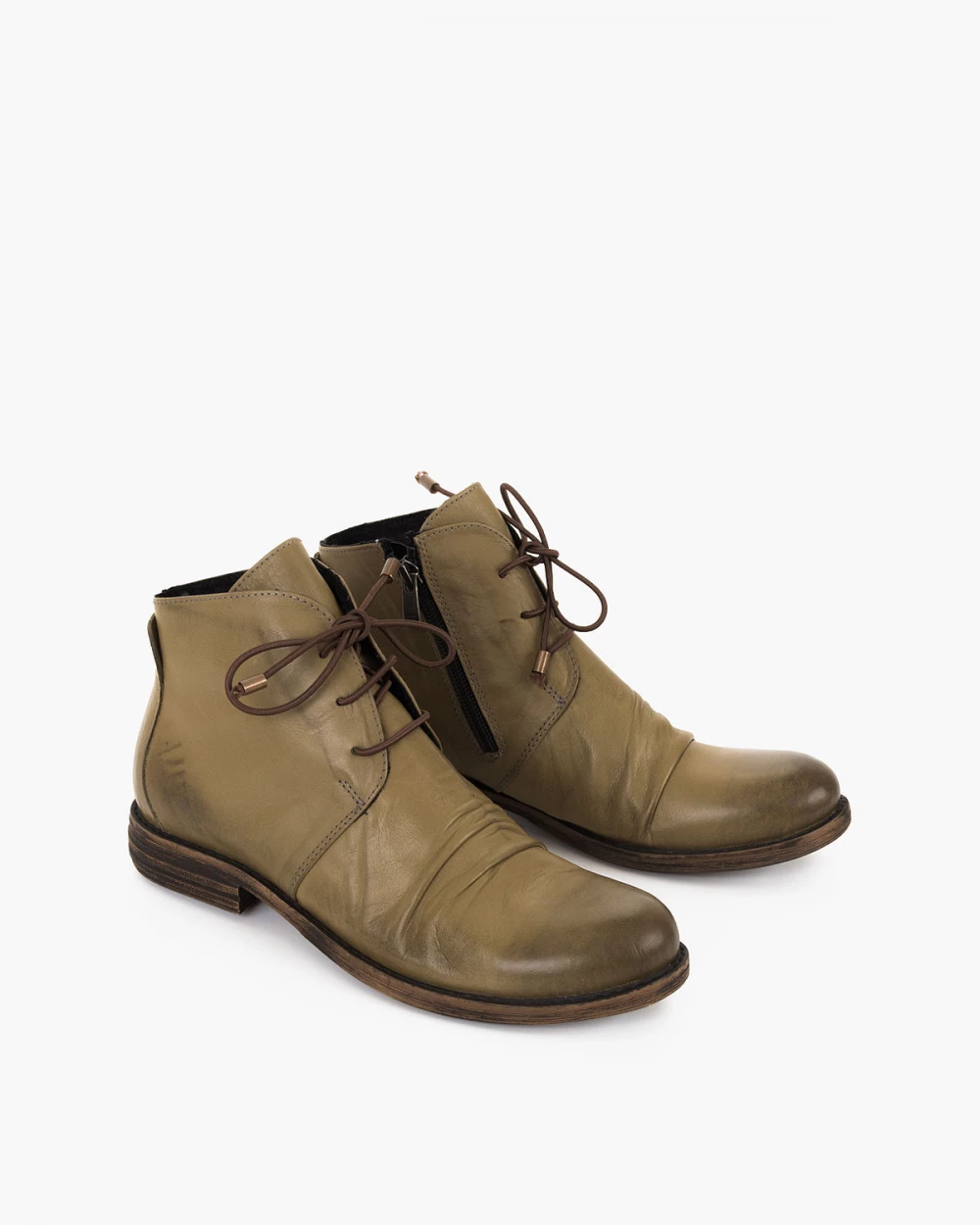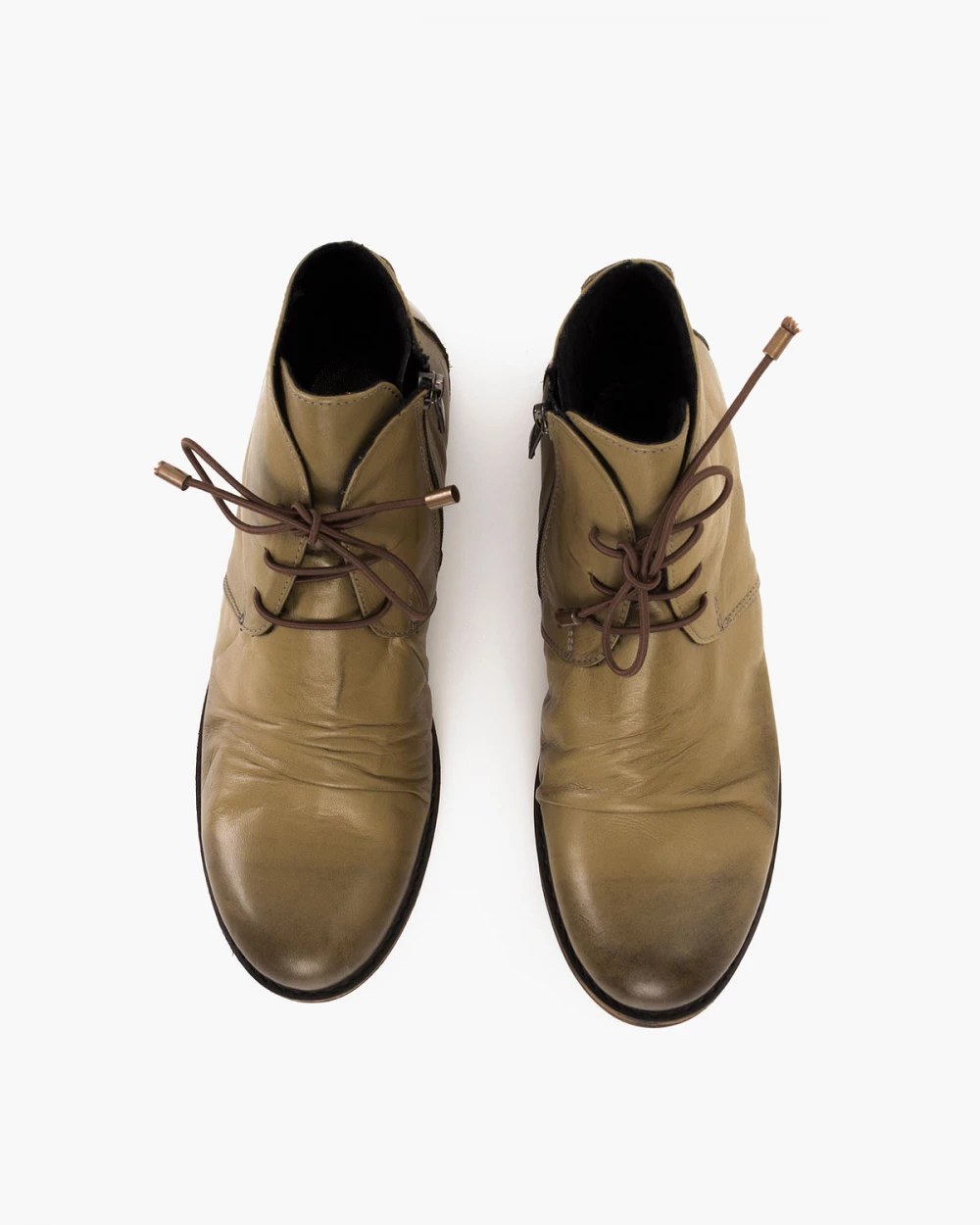 Oliwkowe trzewiki damskie sznurowane ze skóry licowej
